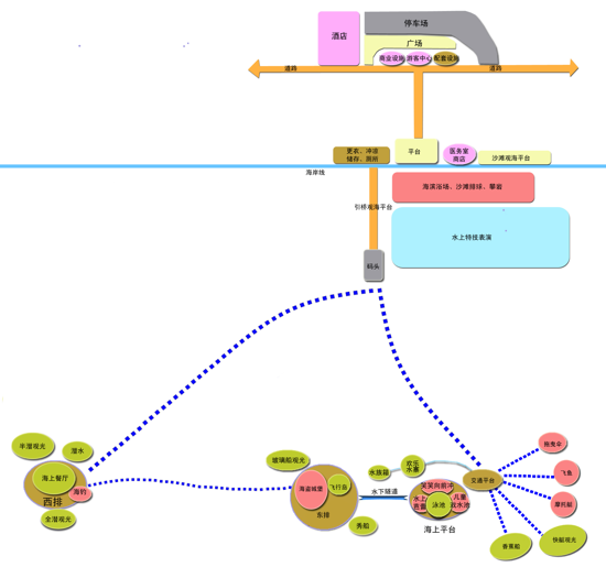 海底世界景區(qū)依托國(guó)際一流的熱帶海濱生態(tài)環(huán)境,具有得天獨(dú)厚的區(qū)位優(yōu)勢(shì)和資源優(yōu)勢(shì)。我們按主題公園模式對(duì)海底世界景區(qū)進(jìn)行了整體提升,轉(zhuǎn)變思路,從提供簡(jiǎn)單的看大海、洗海澡、賞珊瑚轉(zhuǎn)換到完整的海洋體驗(yàn),打造集海洋觀光、運(yùn)動(dòng)、游樂、體驗(yàn)功能為一體的海洋樂園。