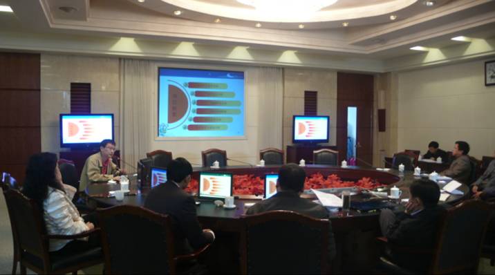 張憲洪正在進(jìn)行項(xiàng)目匯報(bào)