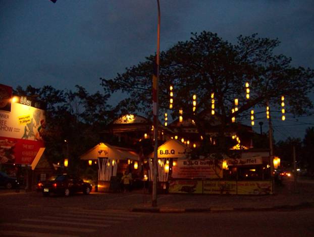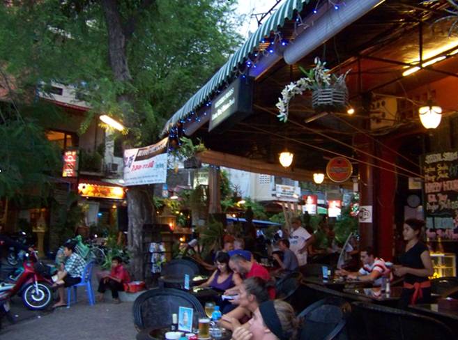 湄公河邊酒吧街里洋頭攢動
