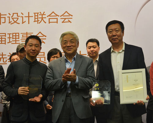 圖二:中國工業(yè)設計協(xié)會會長朱燾為新當選的任克雷任會長、